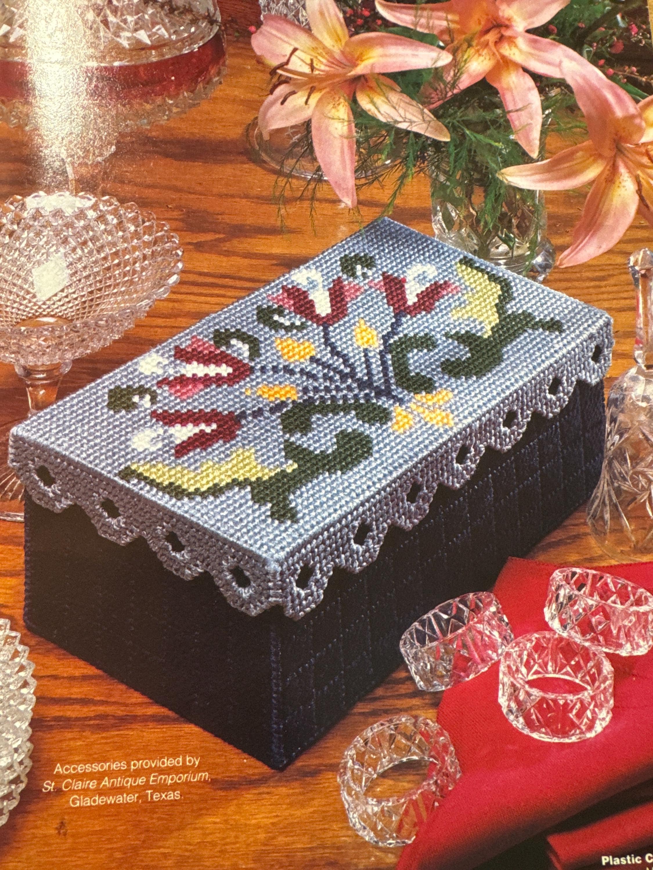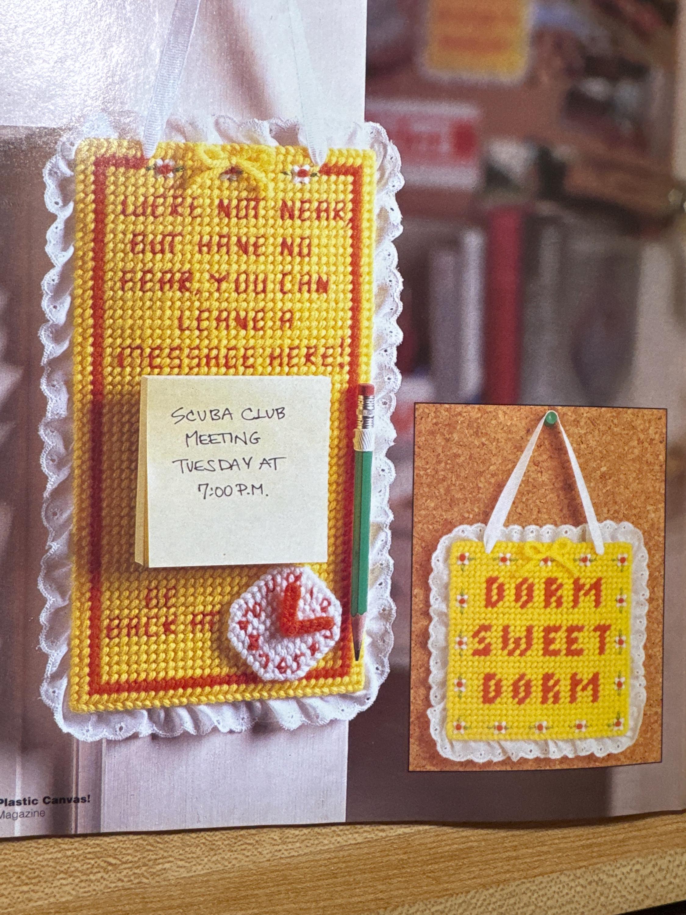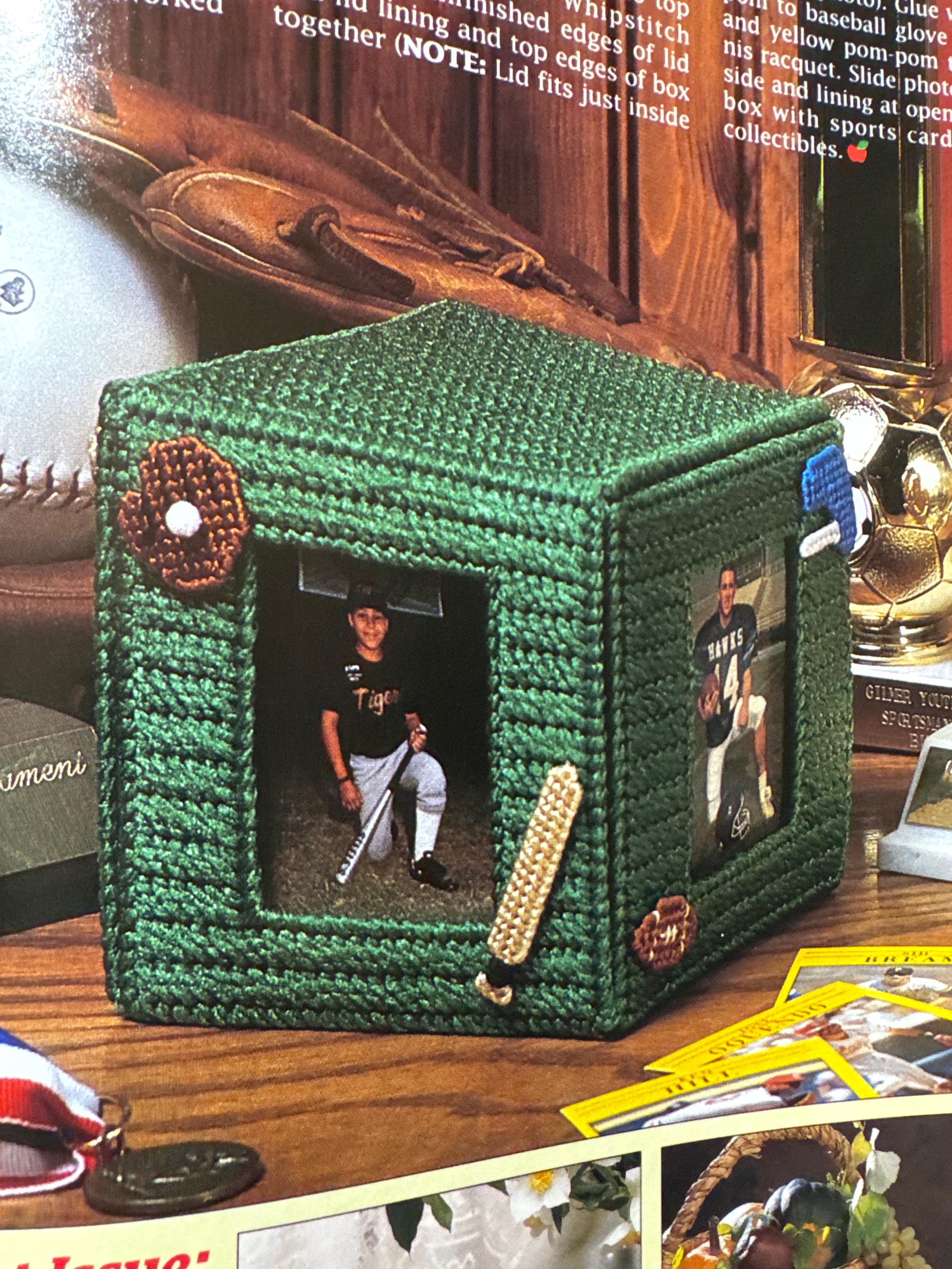 Plastic Canvas magazine vintage winter sparkle shelf sitter pattern baby shower gift idea flower box sport athlete photo cube dorm room sign