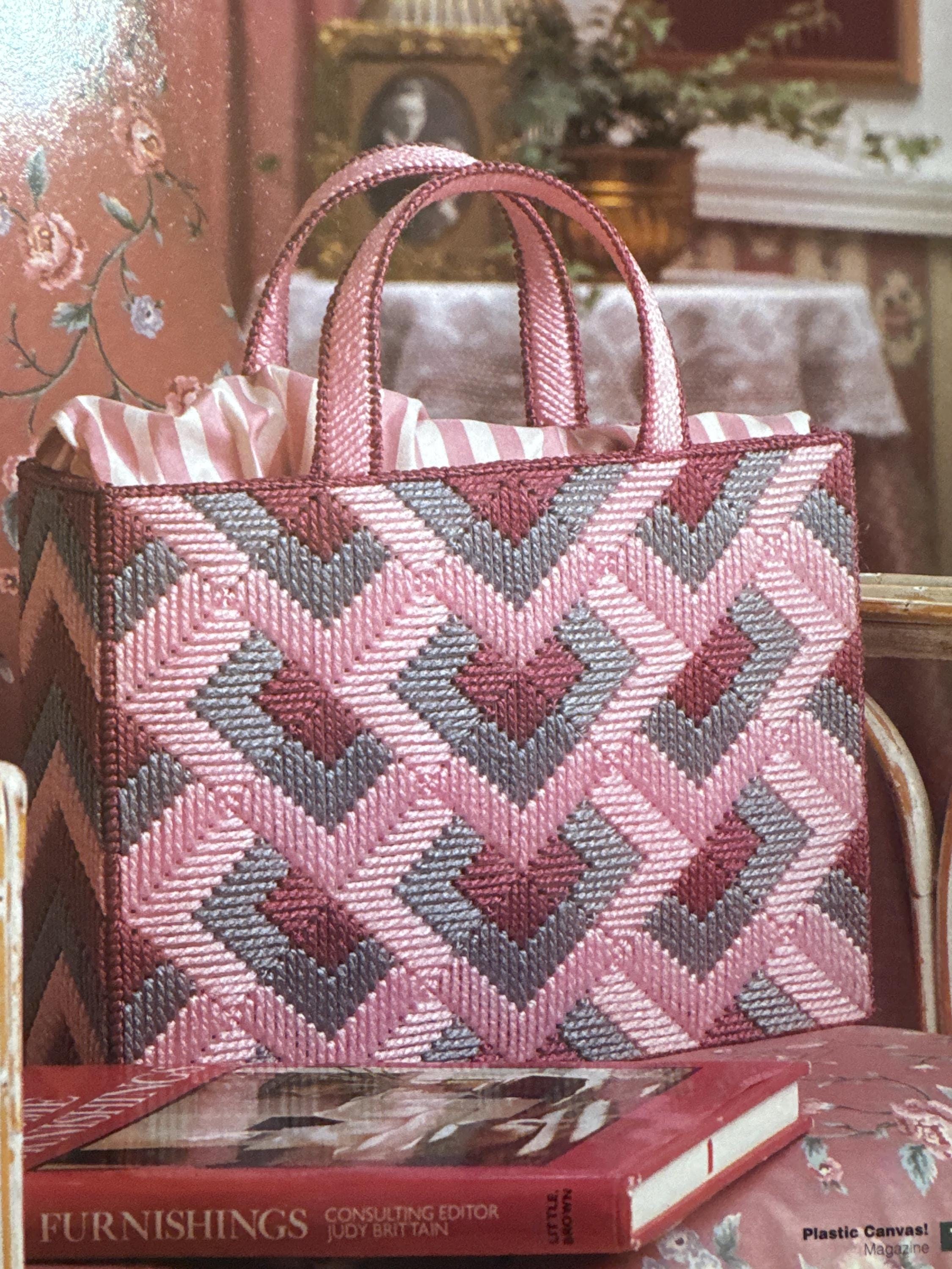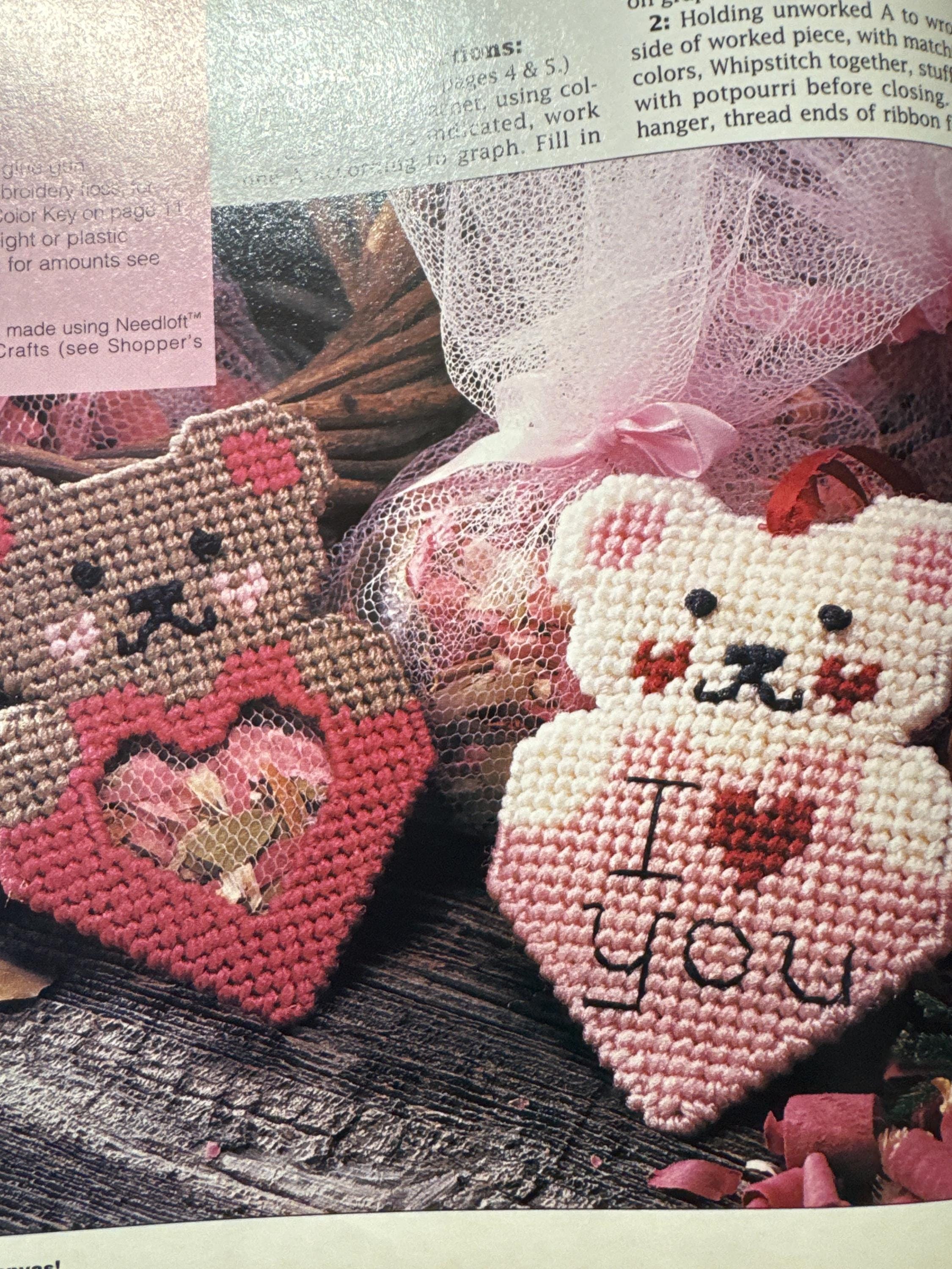 Vintage Plastic Canvas Magazine Needlepoint Valentine Day Tote Bag January February 1992 Craft Pattern Project Gift Canister Game Mat Desk
