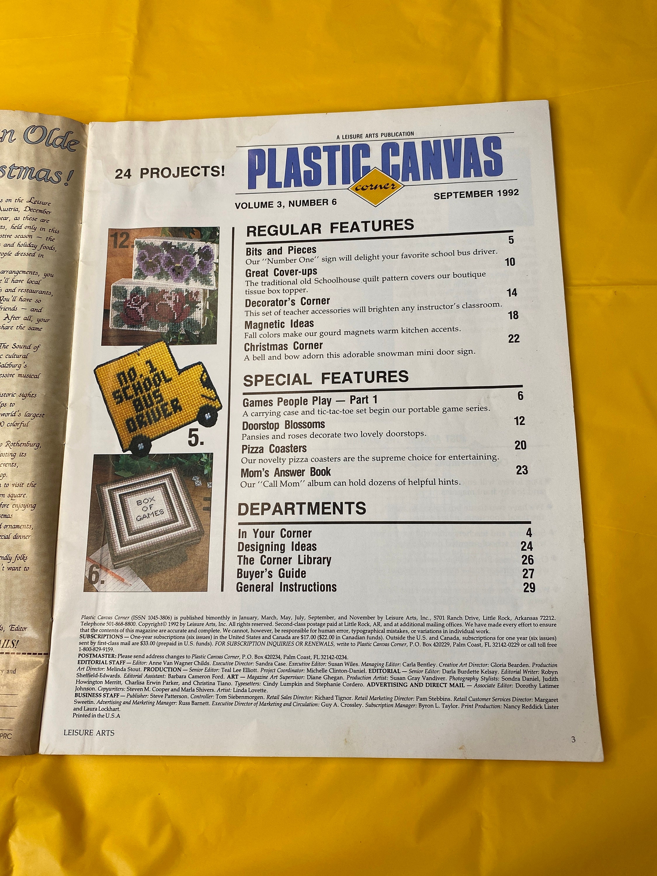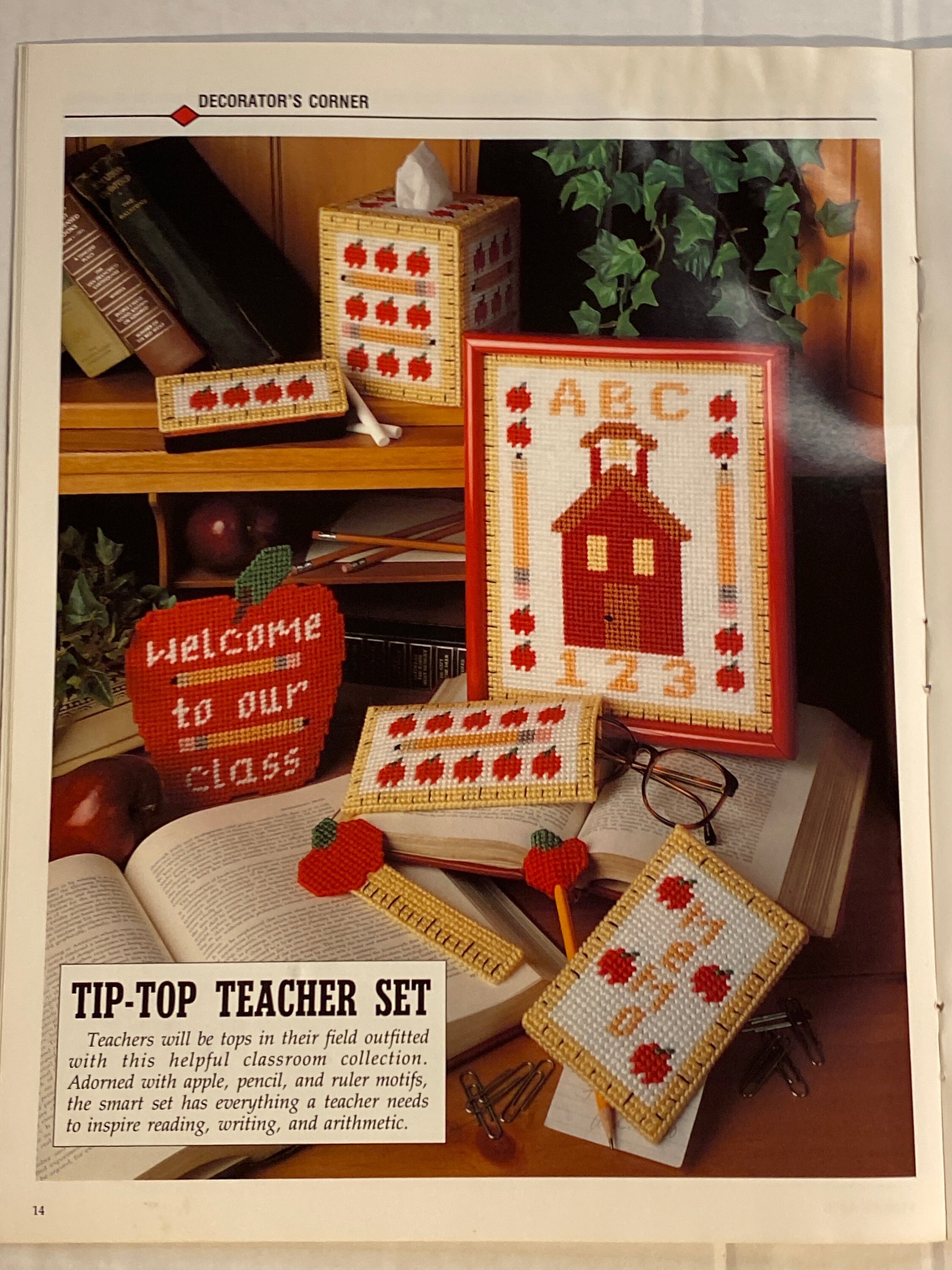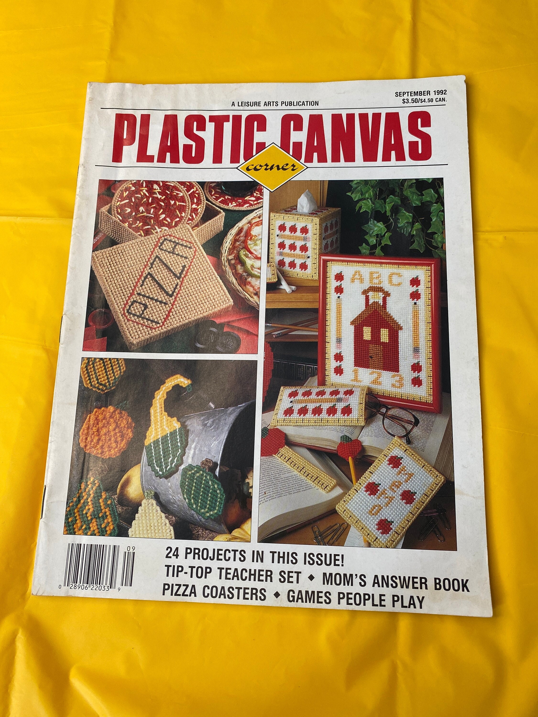 Plastic canvas pattern craft design A Leisure Arts Publication September 1992 Teacher Set Moms Answer book hobby vintage how to magazine