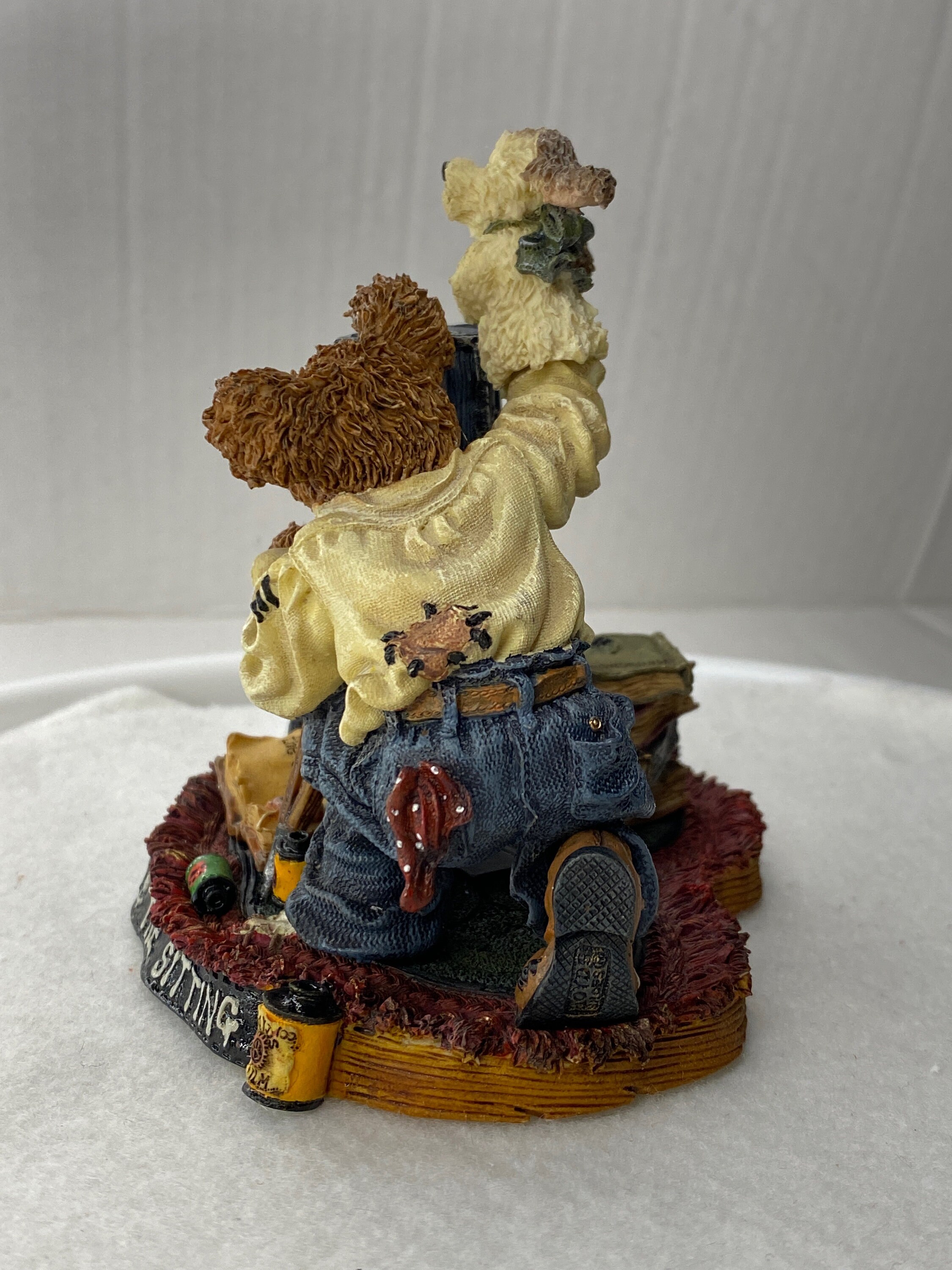 Vintage Boyd bear resin figurines collectors rustic knick knack shelf sitter display Boyds Bear Figurine Flash McBear and The Sitting