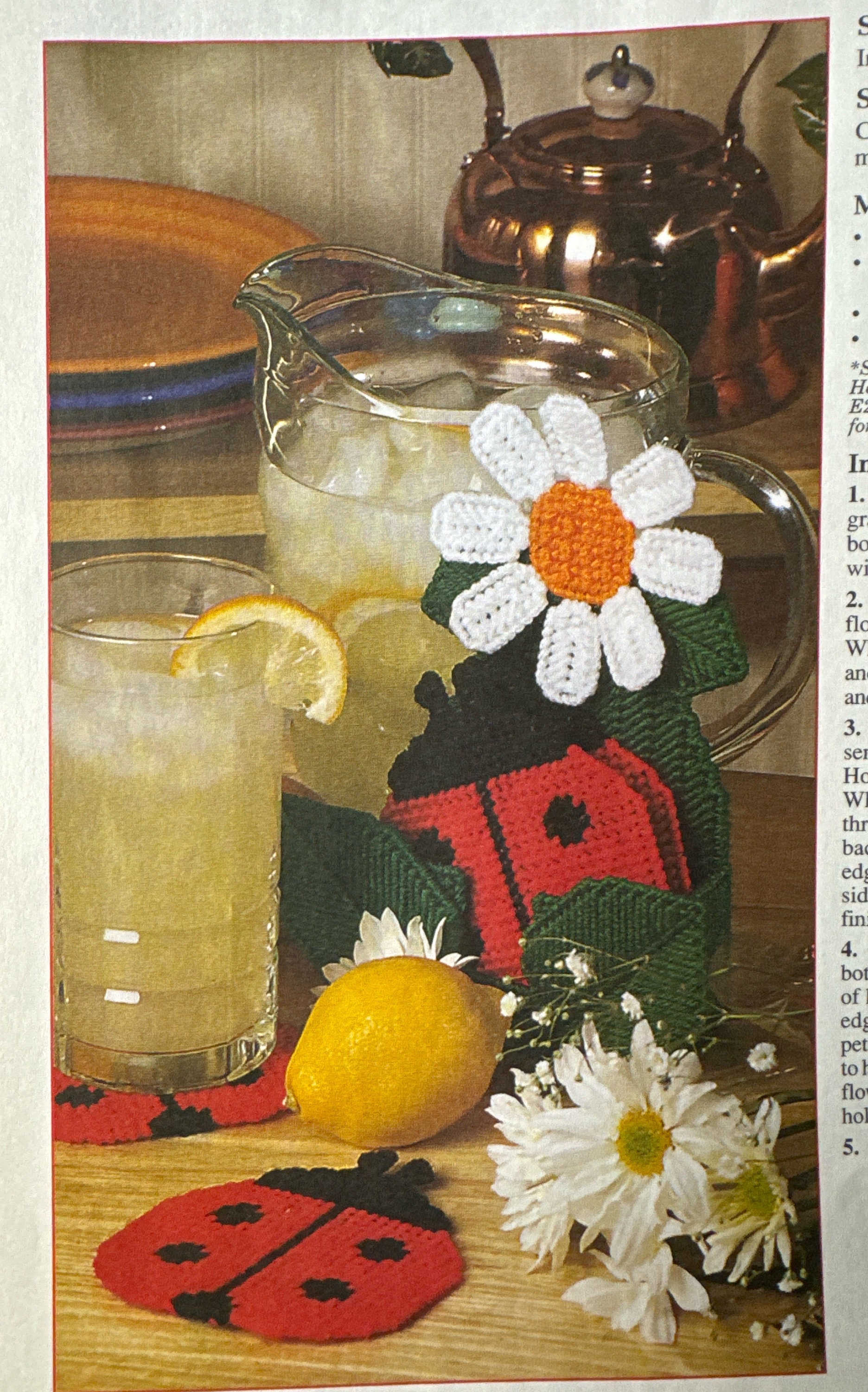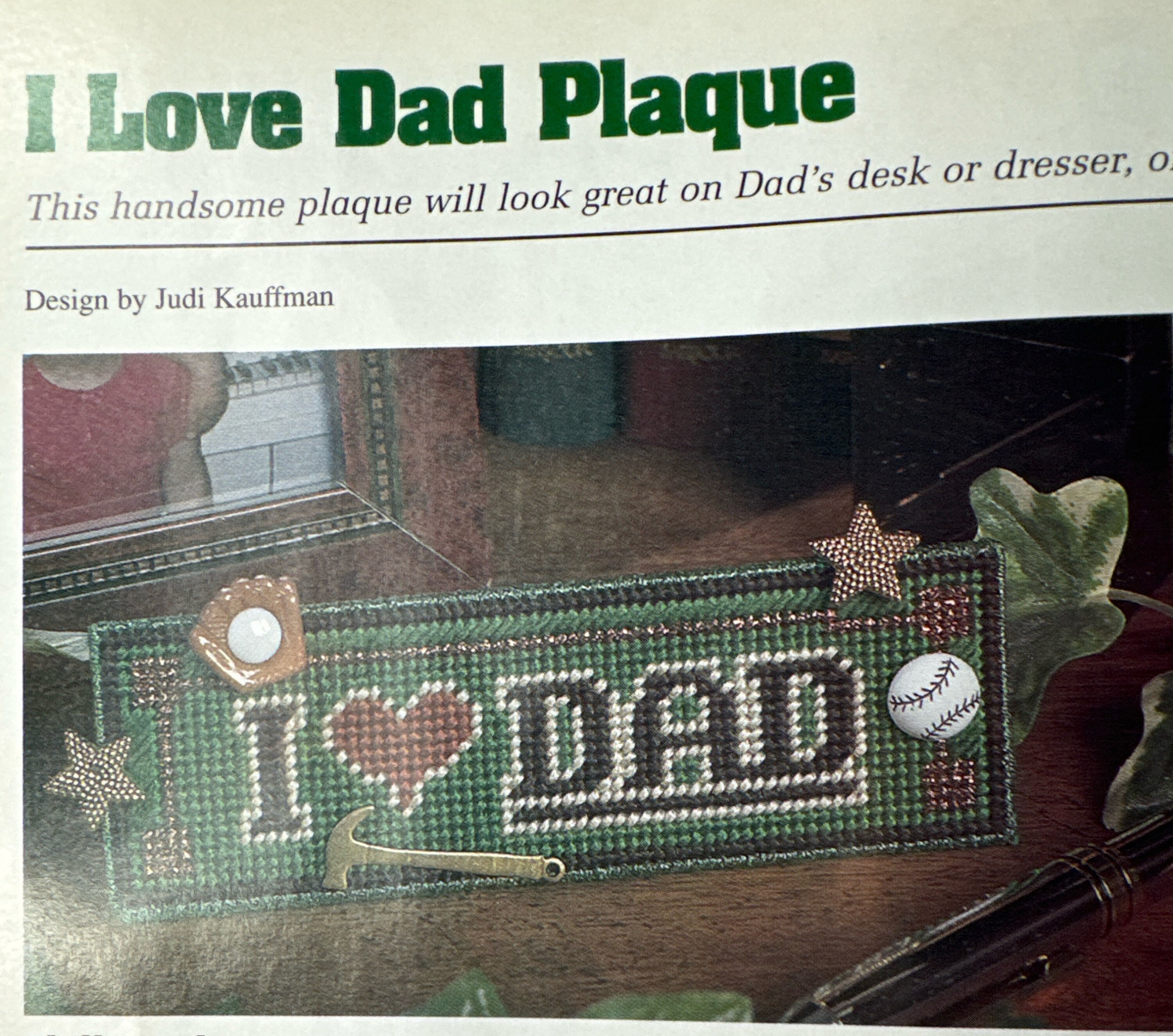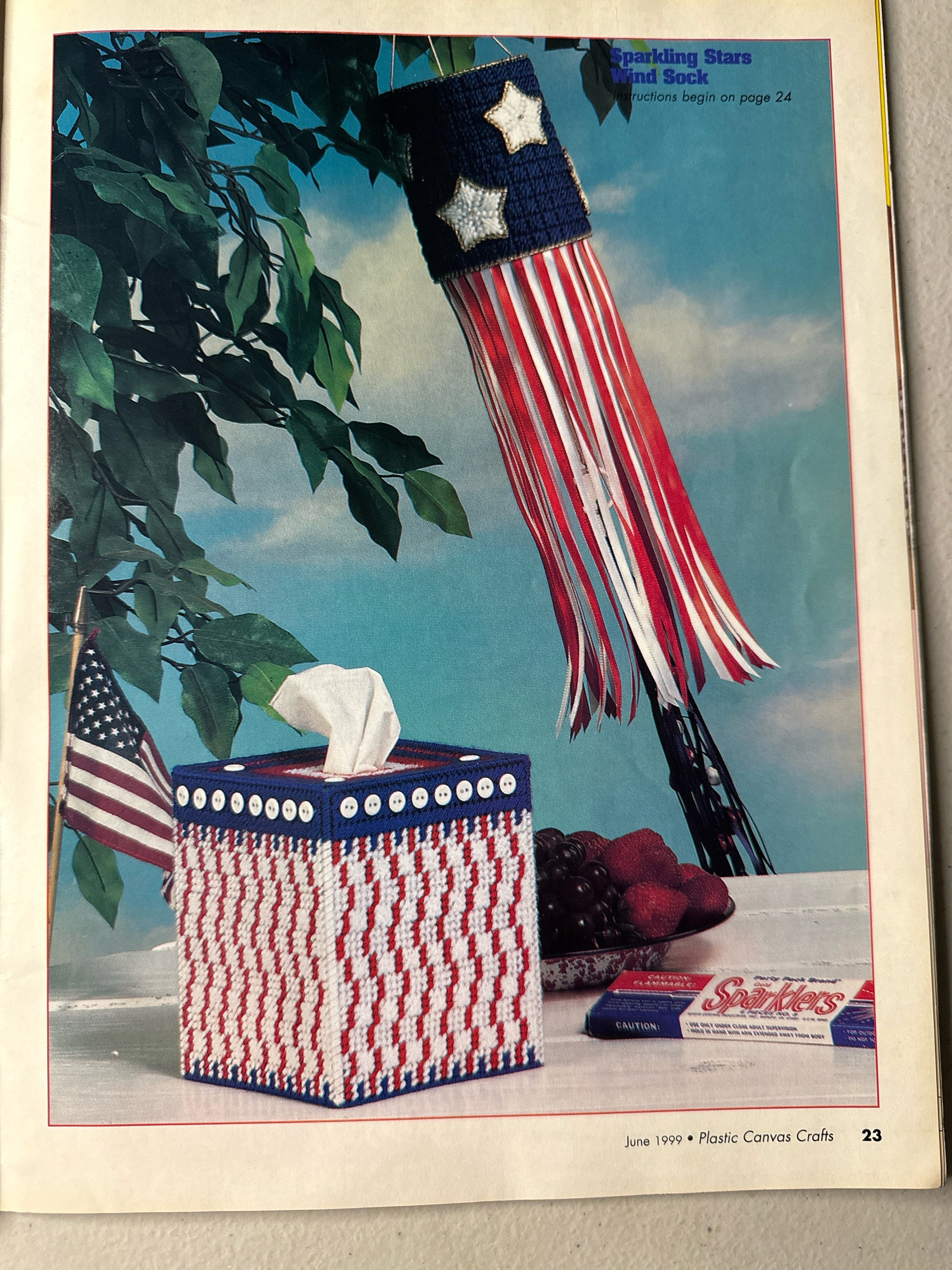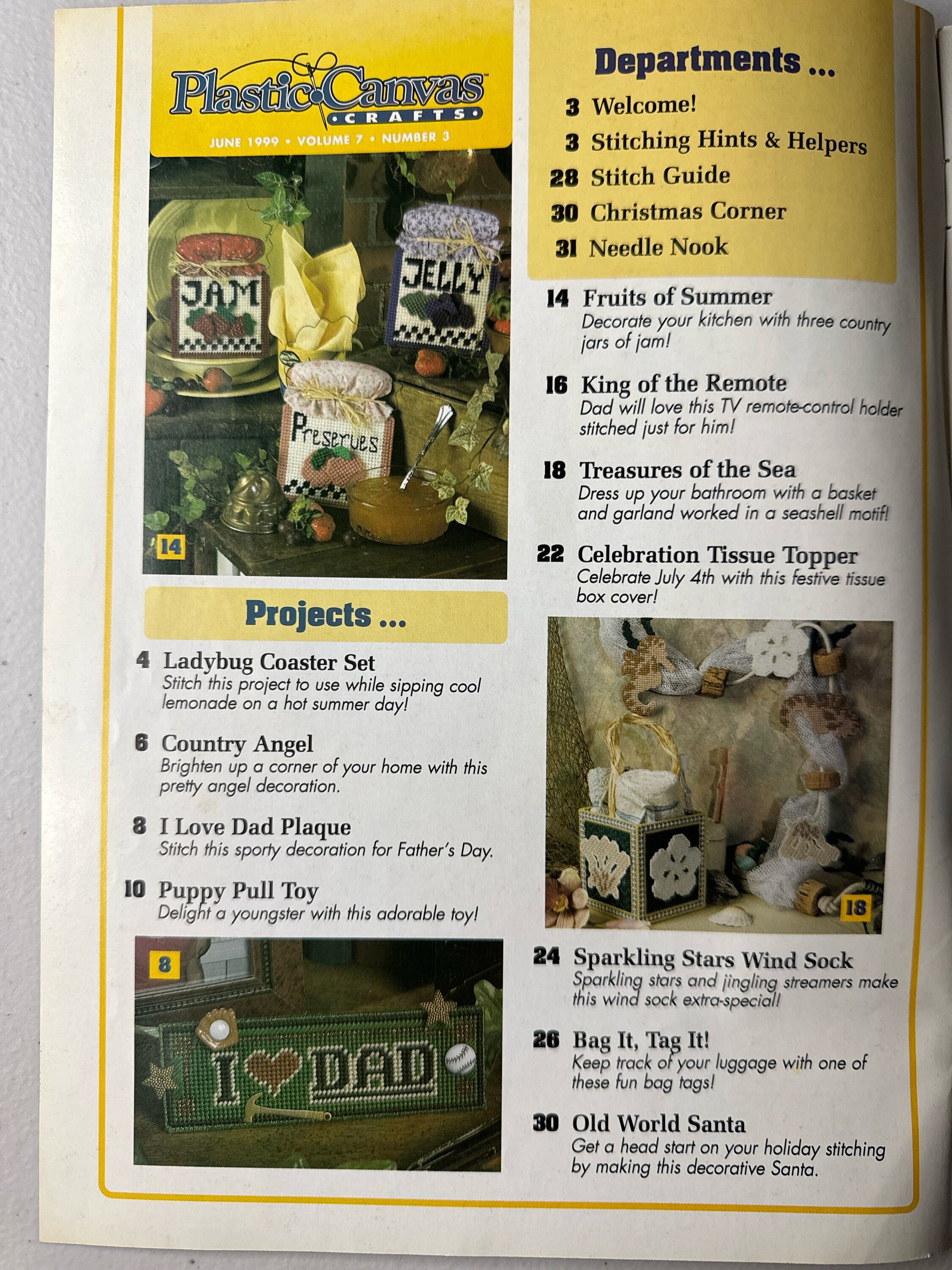Plastic Canvas crafts summer coaster set dad plaque jar toppers puppy pull toy bath set dad sign remote holder June 1999