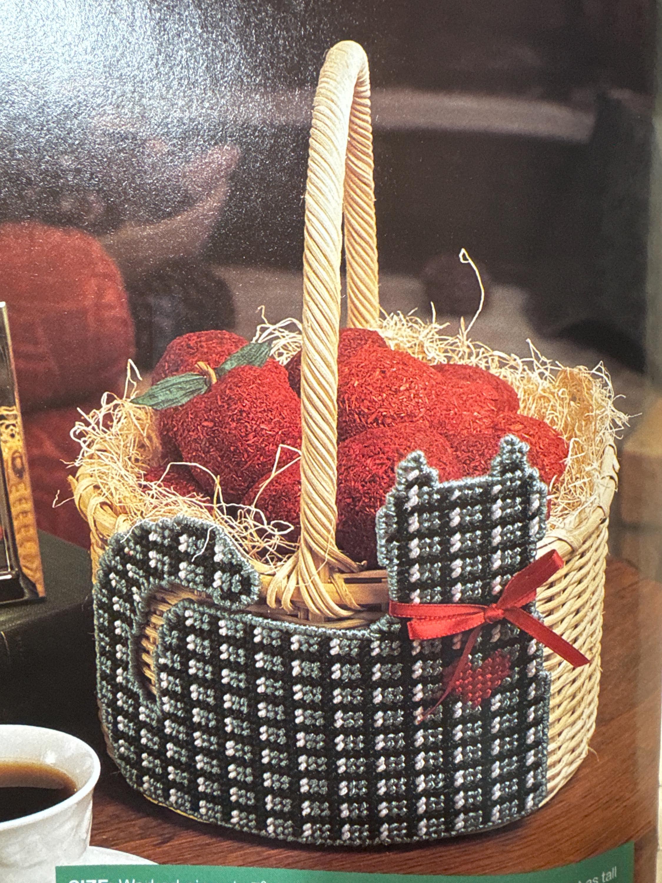• Plaid Kitty fireplace basket