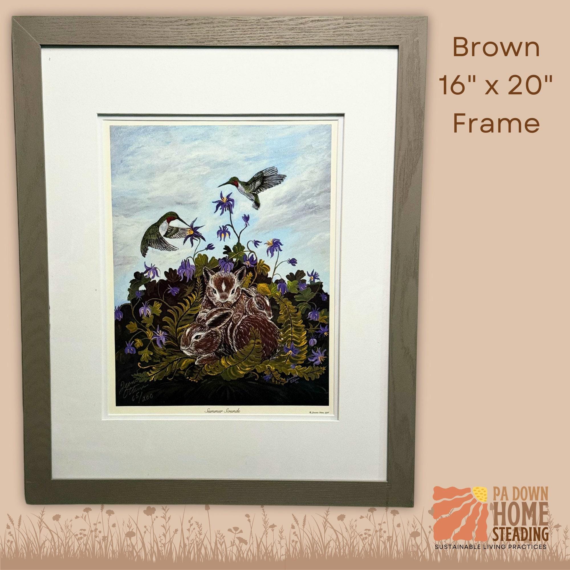 Hummingbird Bunny Art Print Framed Cottontail Picture Perfect Gift for Hunter Cabin Decoration Wildlife Wall Rustic Forest Design Garden