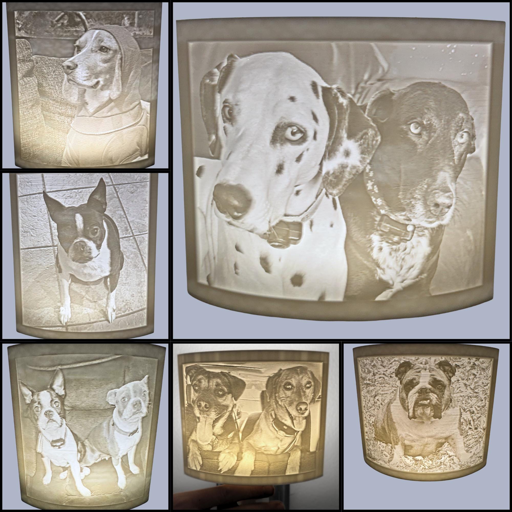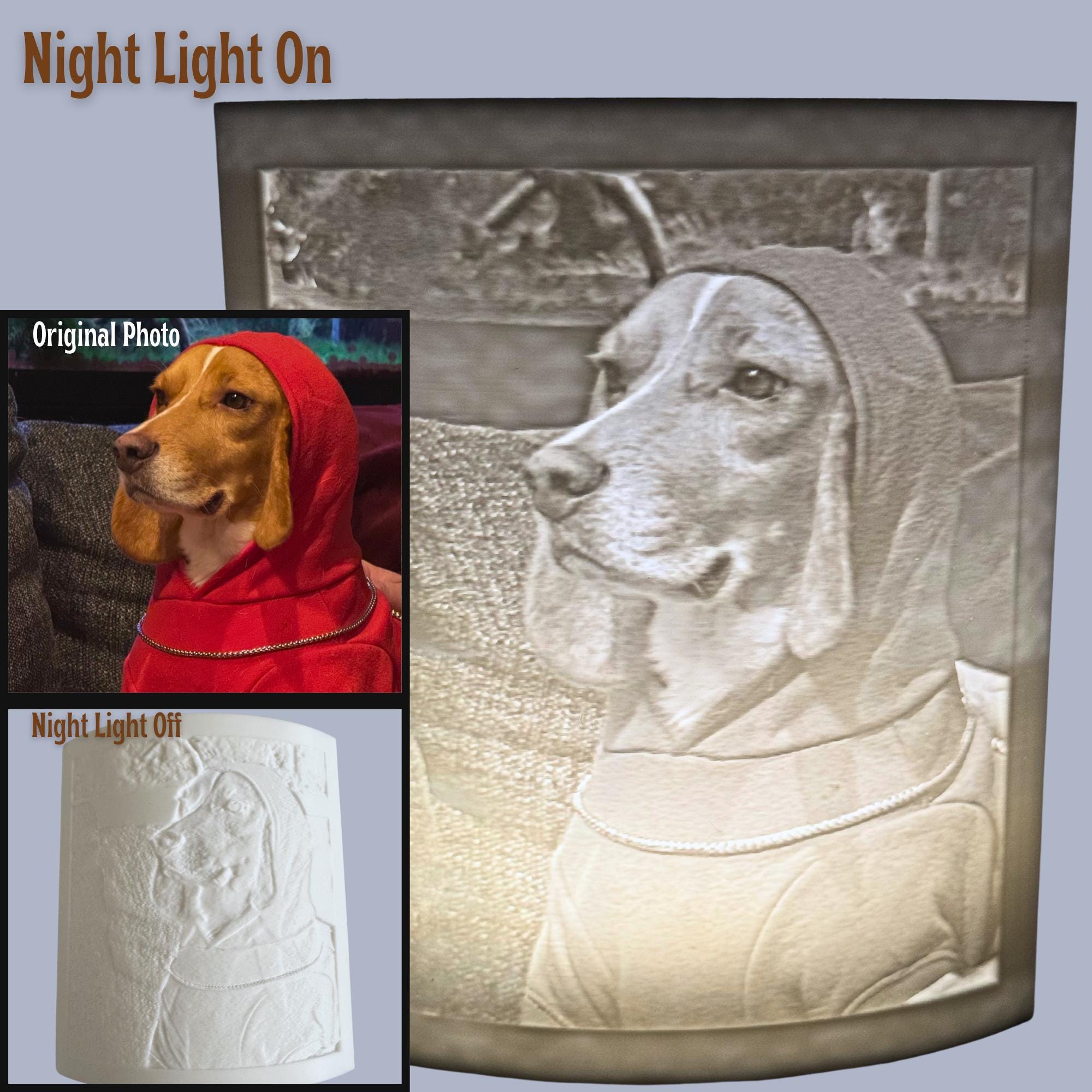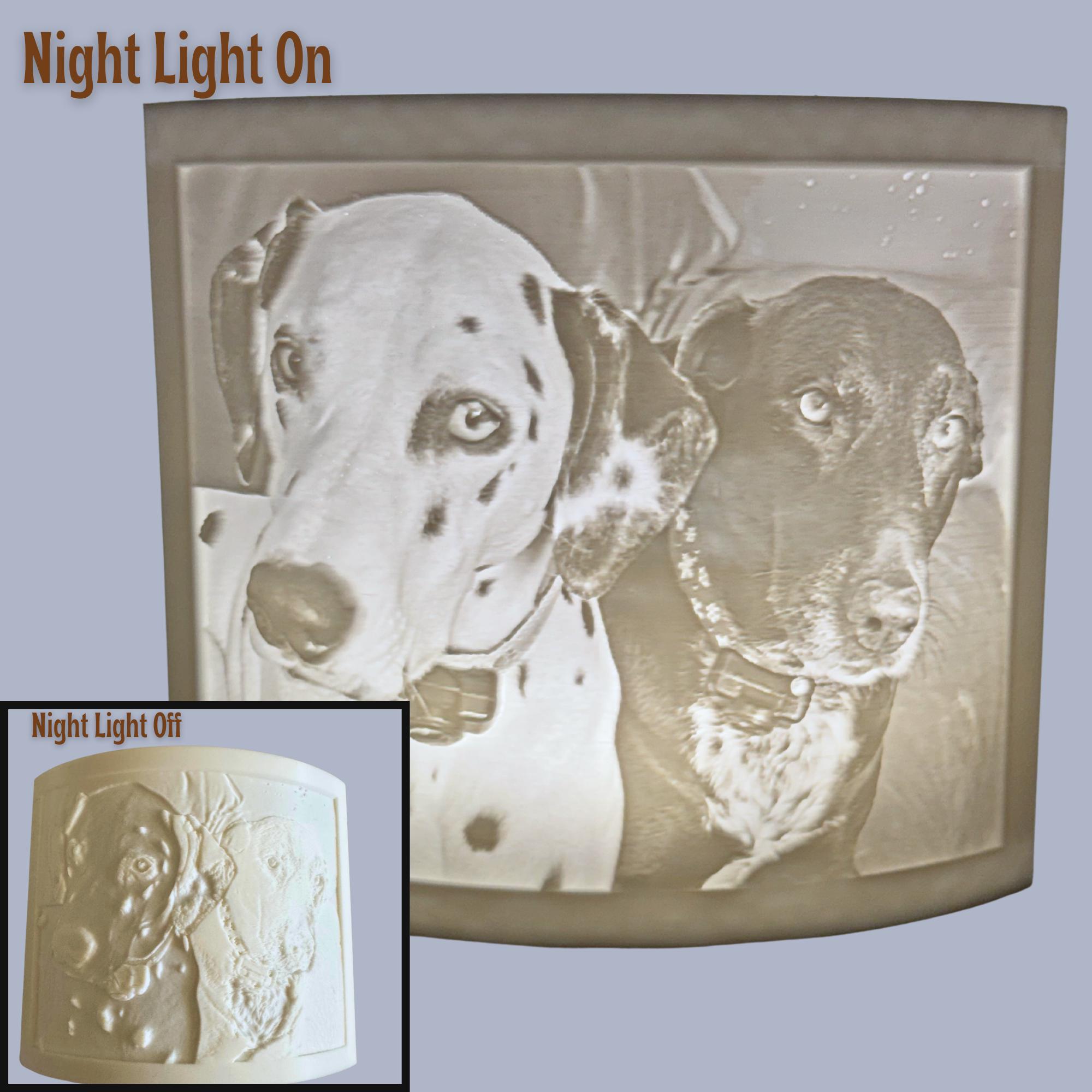 * Create a custom dog night light using your favorite pet photo, transforming it into a beautiful 3D lithophane image.