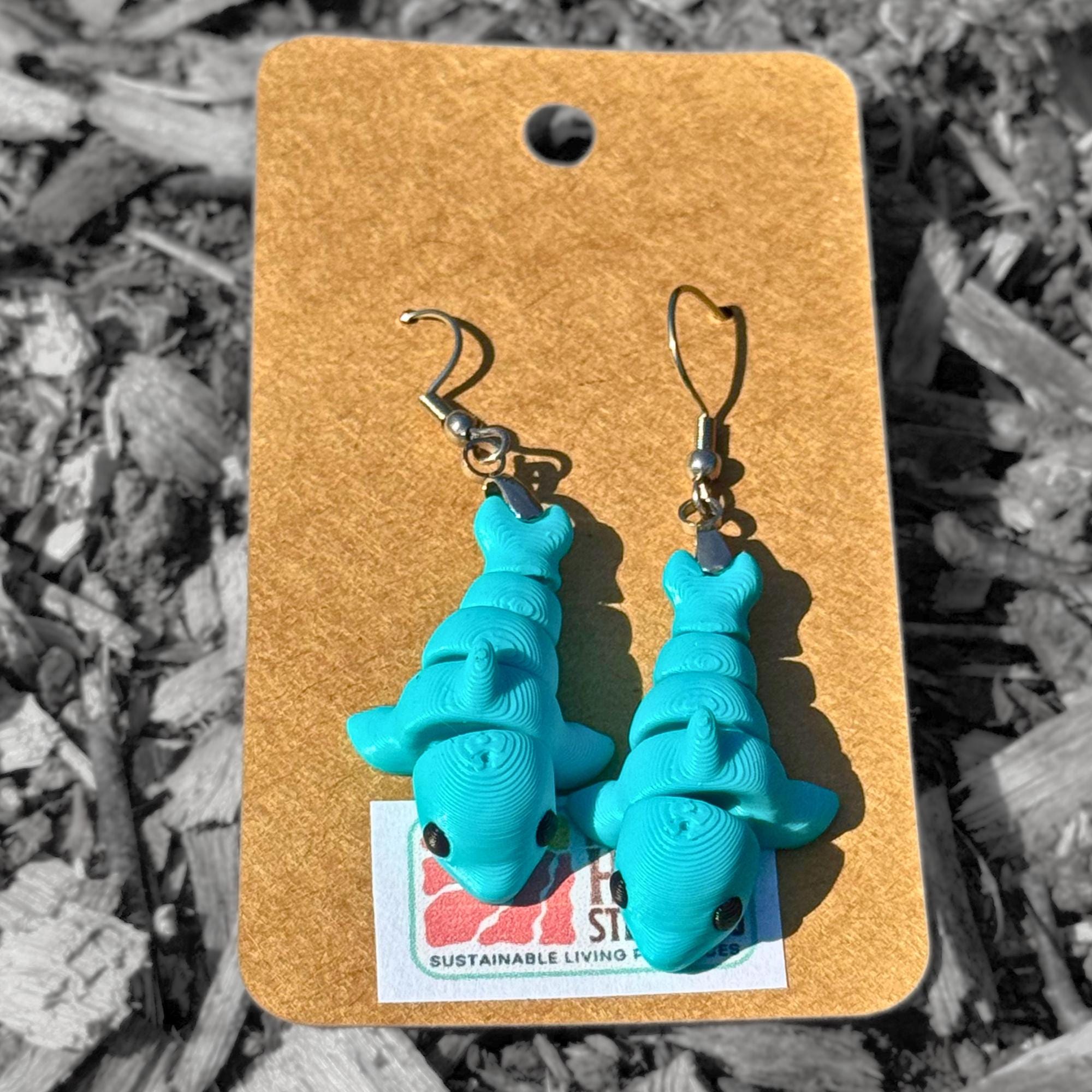 Add a playful touch to your summer look with these custom dolphin dangle earrings featuring a marine animal design that perfectly captures the beach theme's essence. These lightweight, ocean-inspired earrings are crafted from plastic material using 3D printing technology, creating a matching pair that's both stylish and durable.