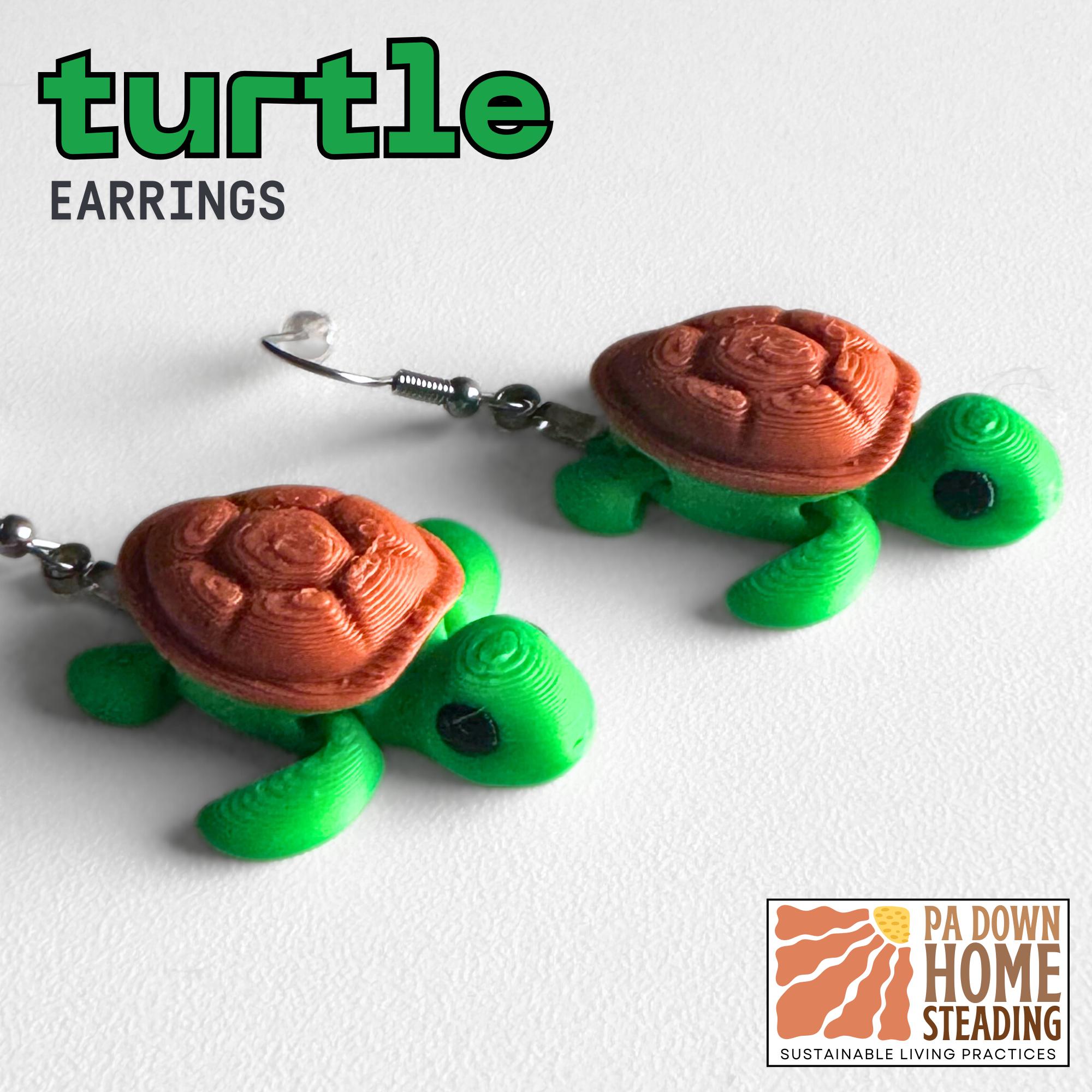 Turtle Earrings: https://padownhomesteading.etsy.com/listing/4325657896/turtle-dangle-earring-custom-color