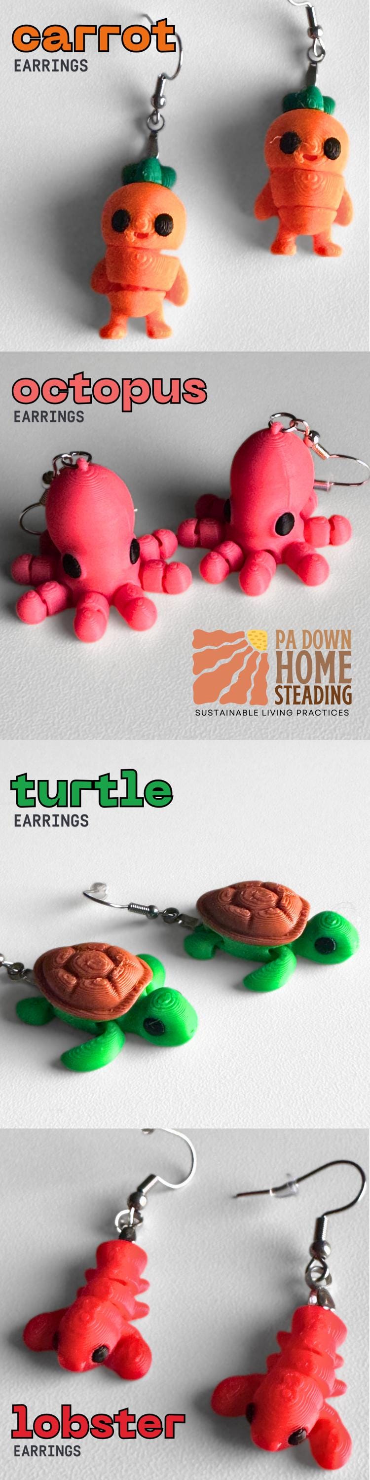 Octopus Earrings: https://padownhomesteading.etsy.com/listing/4325658321/plastic-animal-jewelry-custom-color