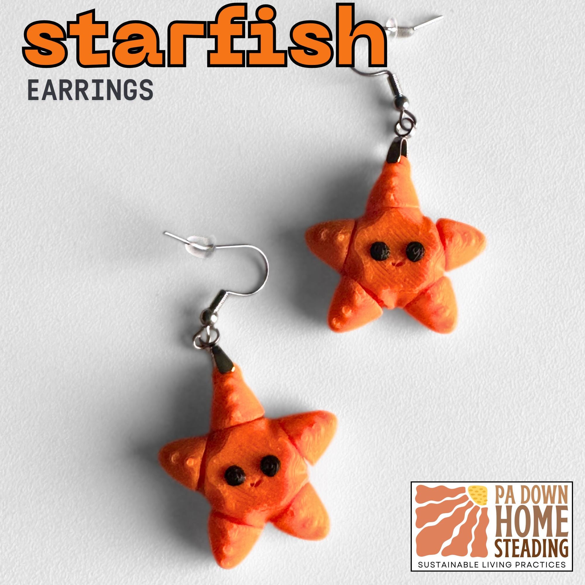 Add a playful touch to your summer look with these custom starfish dangle earrings featuring a marine animal design that perfectly captures the beach theme's essence. These lightweight, ocean-inspired earrings are crafted from plastic material using 3D printing technology, creating a matching pair that's both stylish and durable.