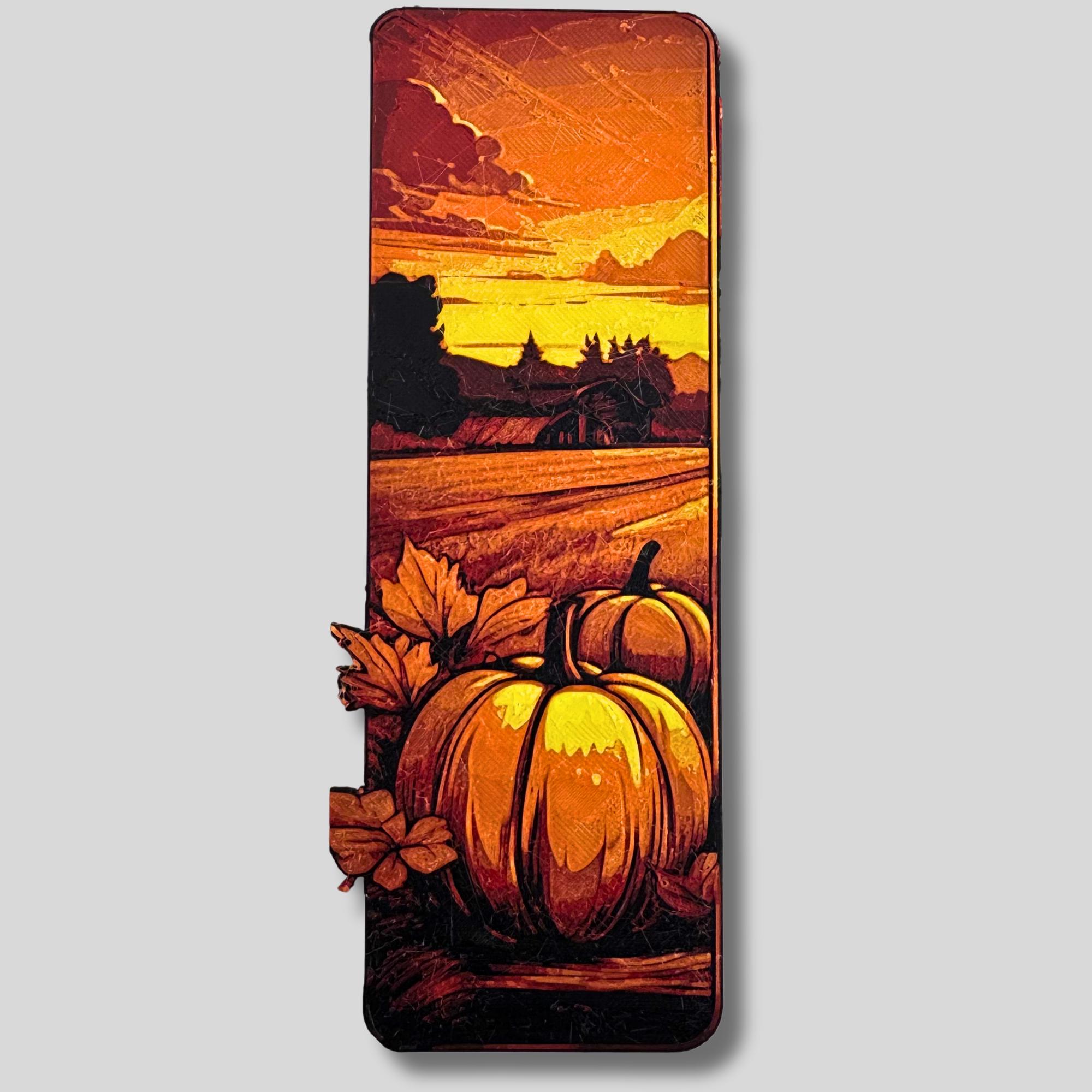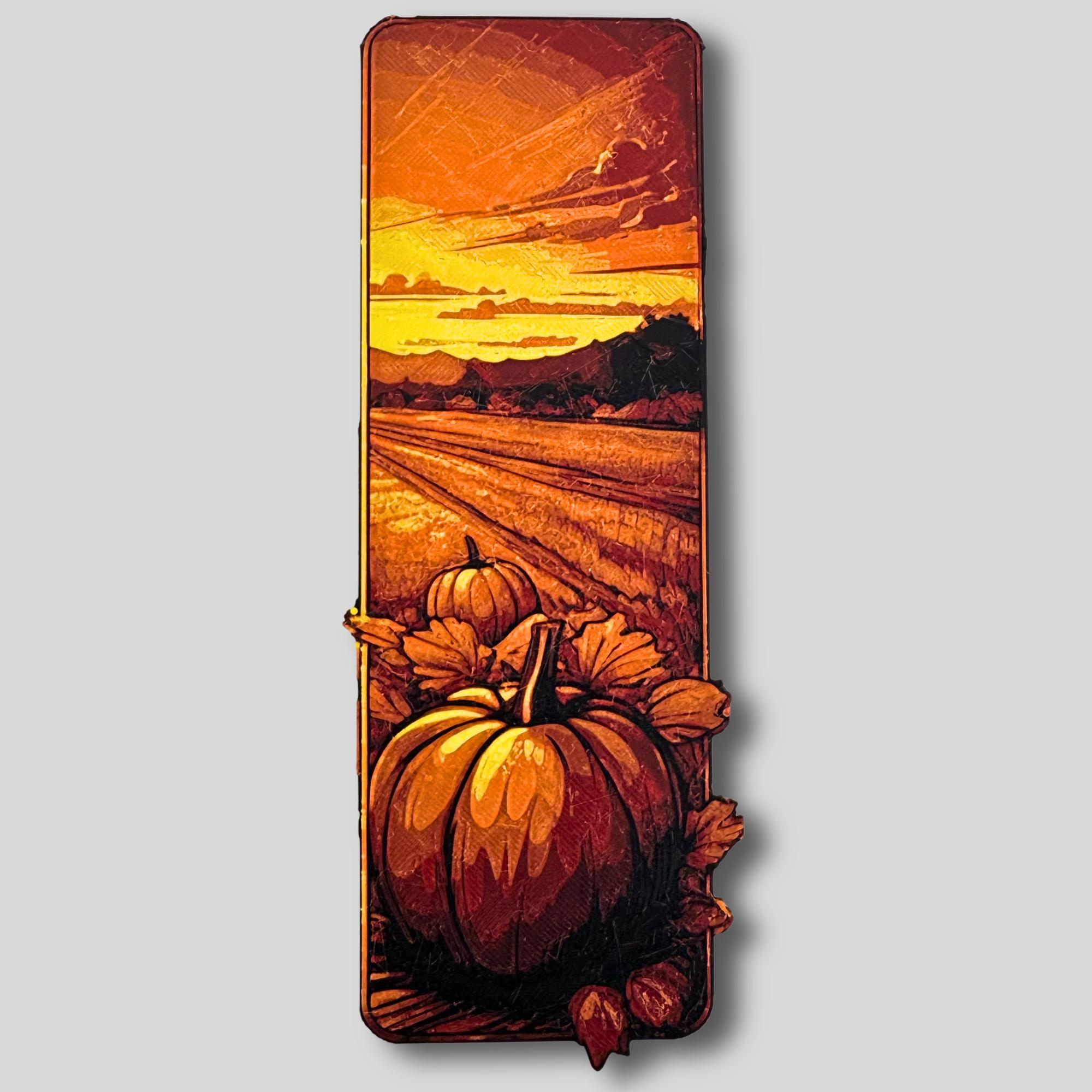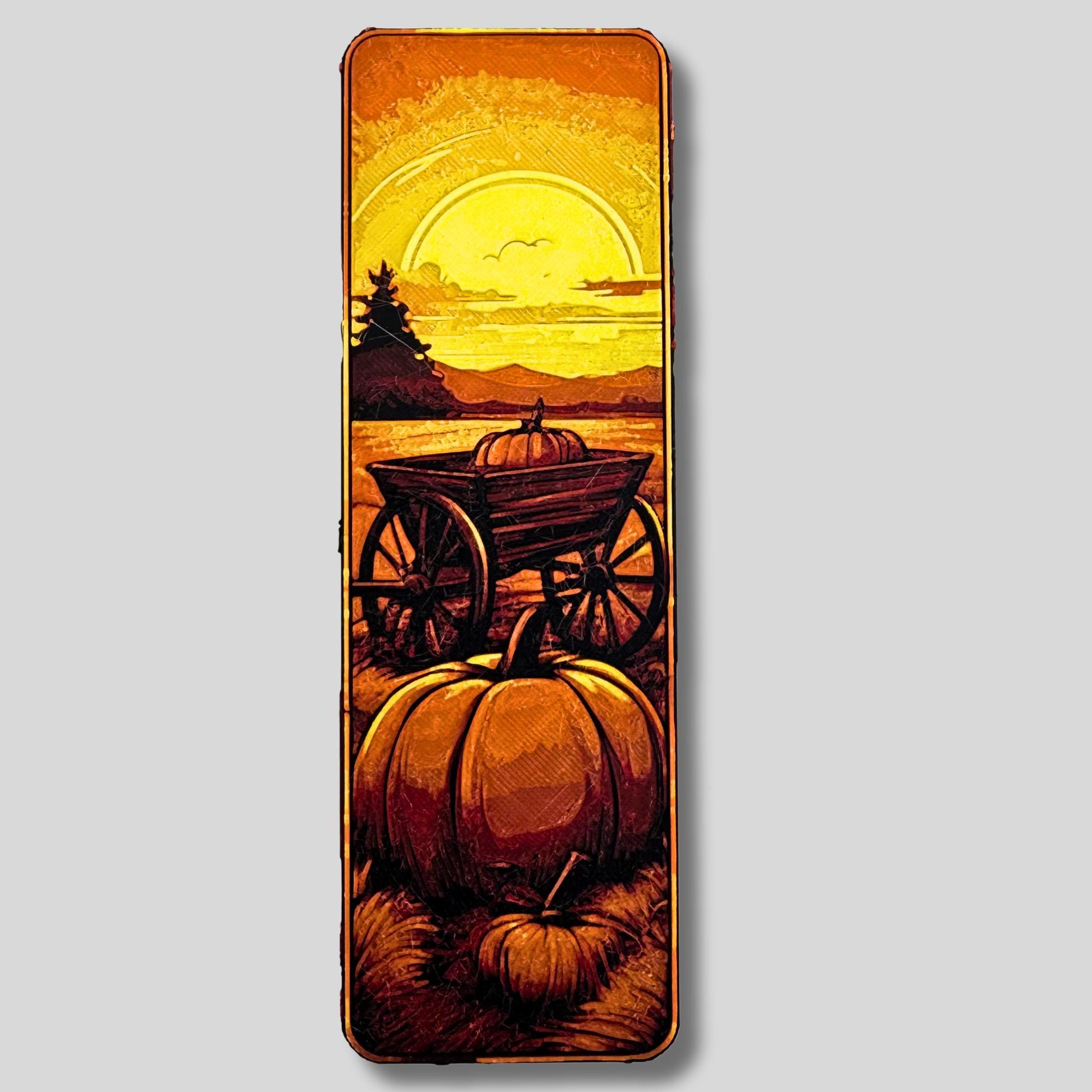 Pumpkin Textured Decoration Wagon Scene Autumn Bookmark Reading Gift Book Lover Literary Companion Fall Accessory Panel Design Harvest Theme
